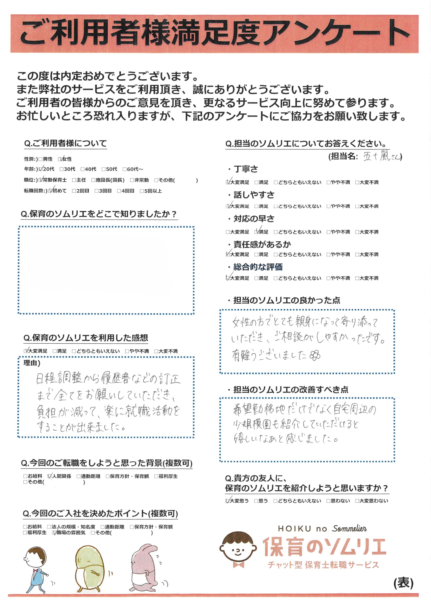 保育のソムリエのサービスを利用した方からのアンケートを一部ご紹介させていただきます。