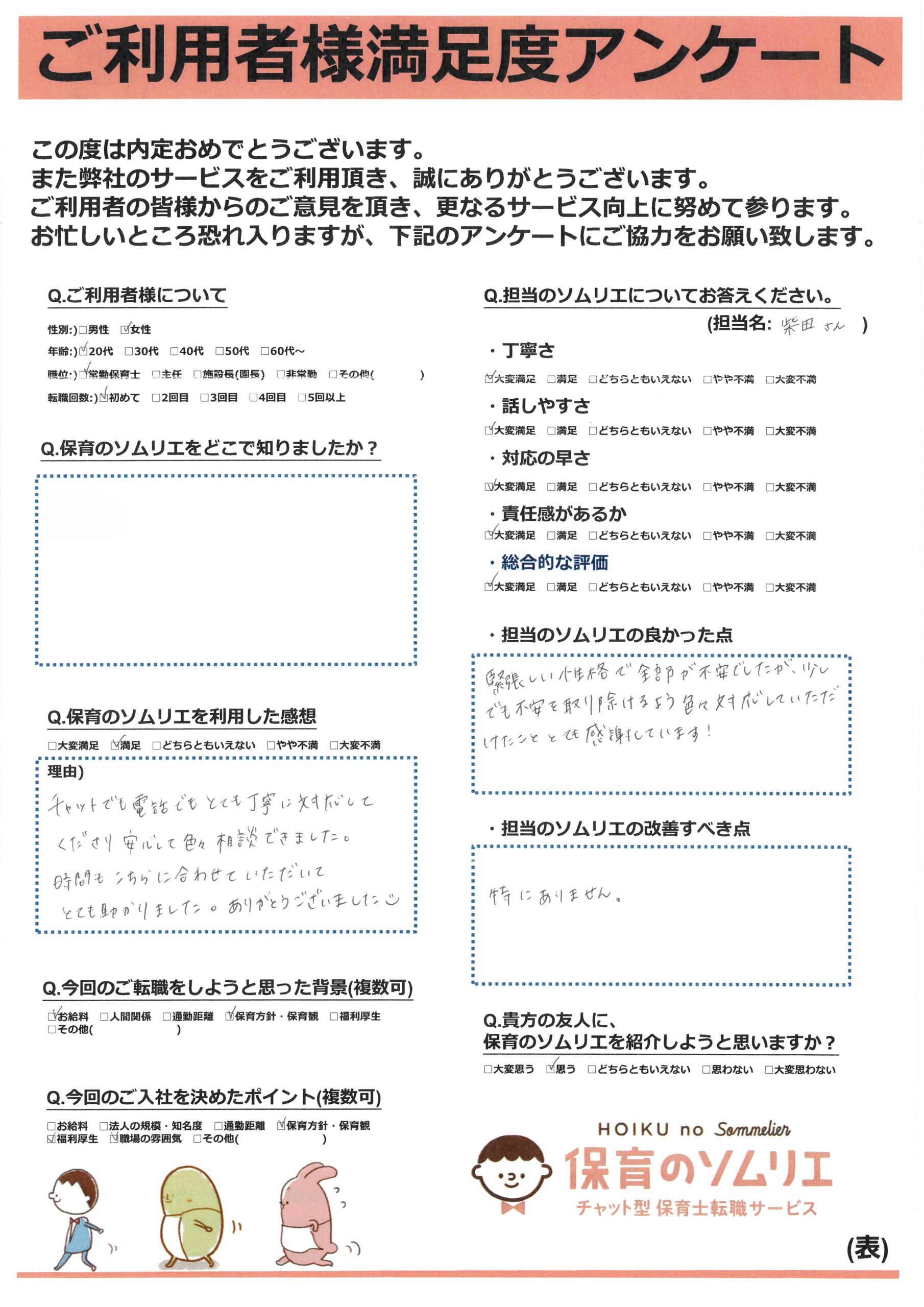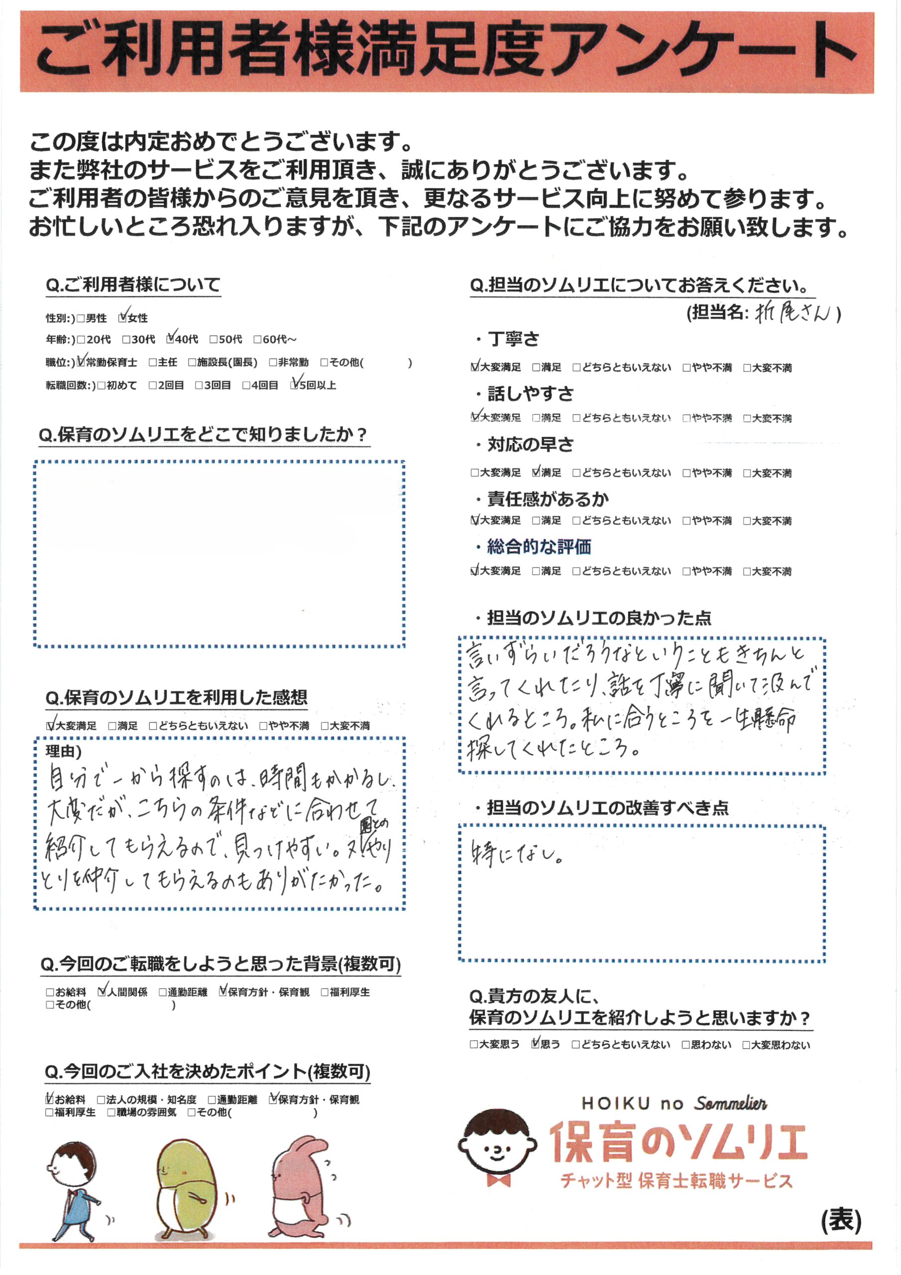 保育のソムリエのサービスを利用した方からのアンケートを一部ご紹介させていただきます。