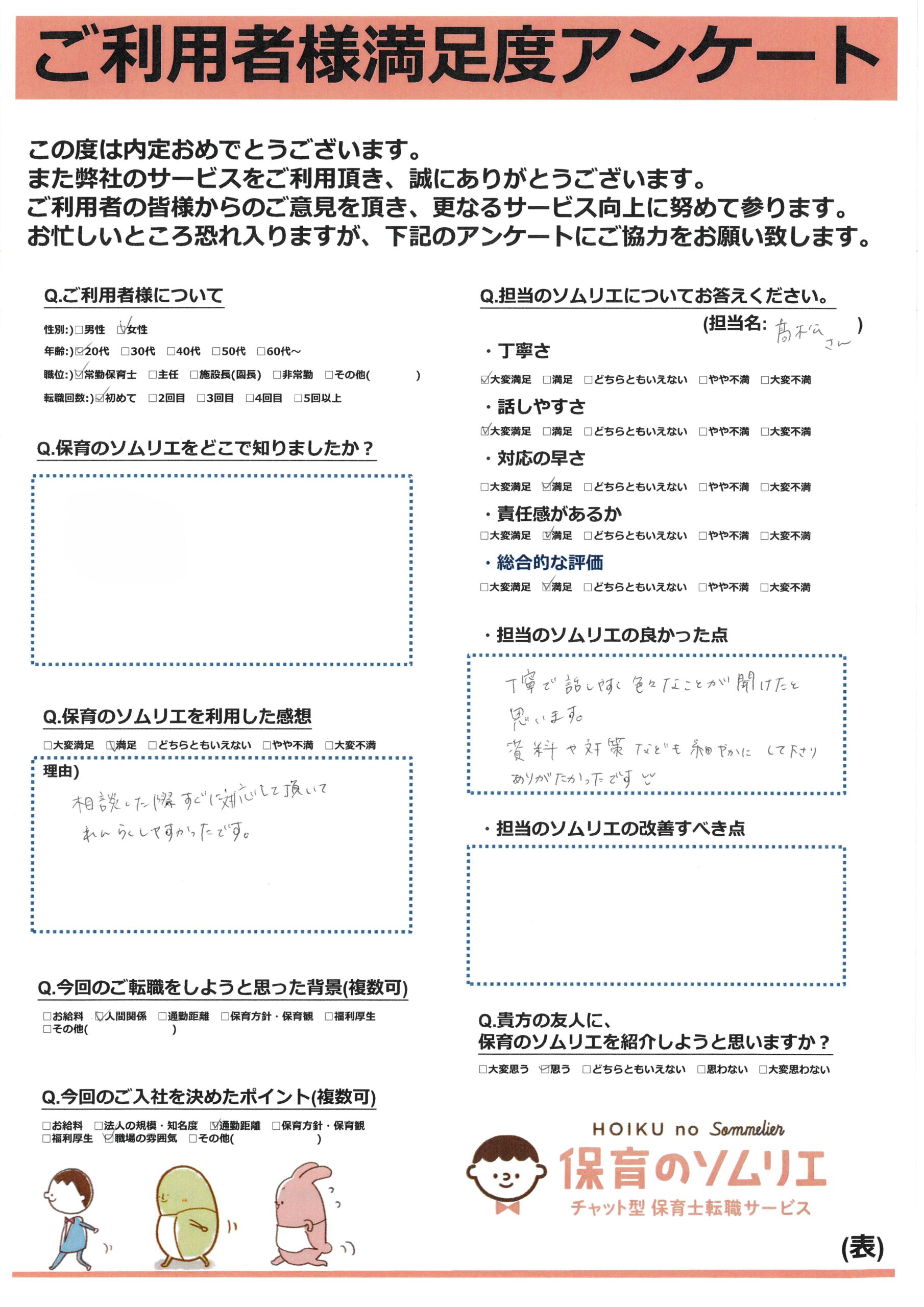 保育のソムリエのサービスを利用した方からのアンケートを一部ご紹介させていただきます。